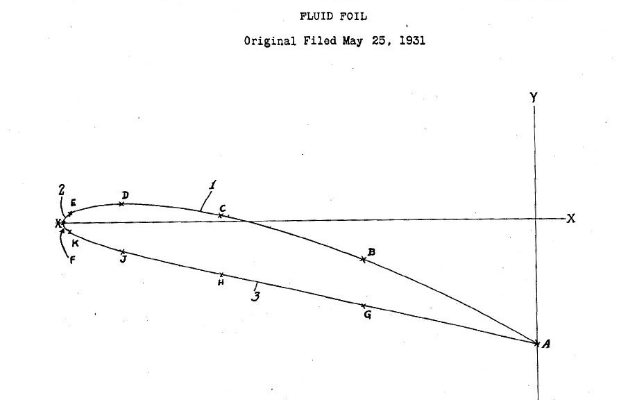 Enter Davis, introduced by Brookins to the top of the firm as a technical wizard with special interest in long range flight. For the last several years he had been working on wing design, with special attention to the cross sectional shapes of wings. He claimed to have developed better wings than NACA, the official federal aviation research authority. To prove it he presented his hosts with his Patent 1,942,688 “FLUID FOIL” of Jan.9.1934.
